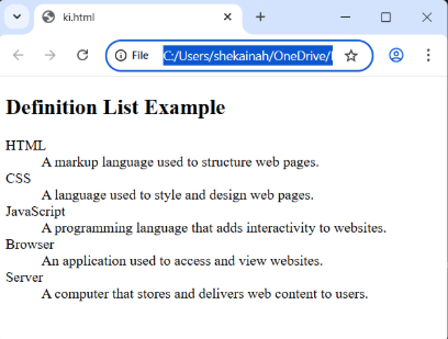 <h2>Definition List Example</h2>
