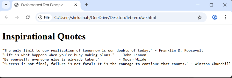 <title>Preformatted Text Example</title>