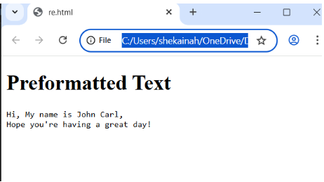 <h1>Preformatted Text </h1>