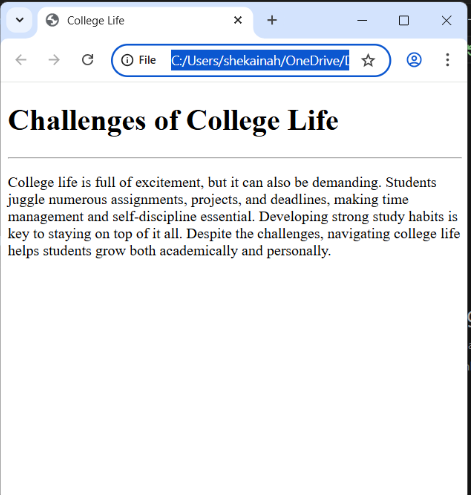 <h1>Challenges of College Life</h1>