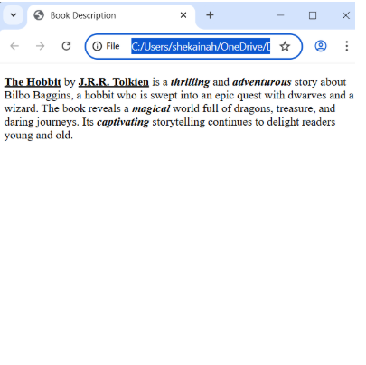 <b><i>adventurous</i></b> story about Bilbo Baggins, a hobbit who is swept into an